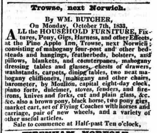 A dulcimer was advertised in a general sale in Trowse, Norwich.