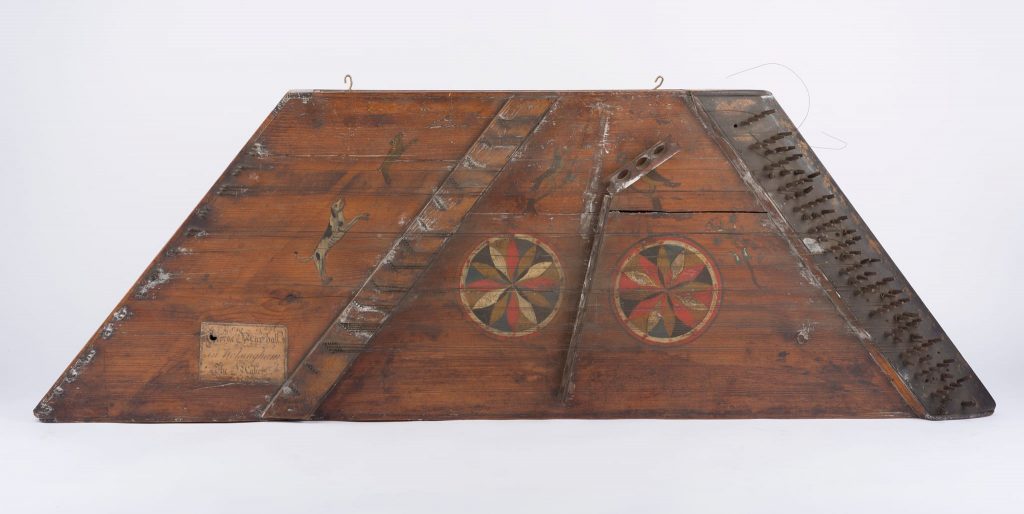 In correspondence with the Wortley, the author Peter Eden said he had sold this dulcimer on to Richard & Joan Arden-Jones of Isleham near Ely but after Wortley went to visit these people in March 1973, he wrote back to Peter Eden that theirs was not the same instrument seen in the illustration, which was of an earlier type and should be considered a museum specimen. Eden did not clarify any further on the provenance or subsequent destination of this fixed-bridge dulcimer. Wortley dated it to circa 1800.