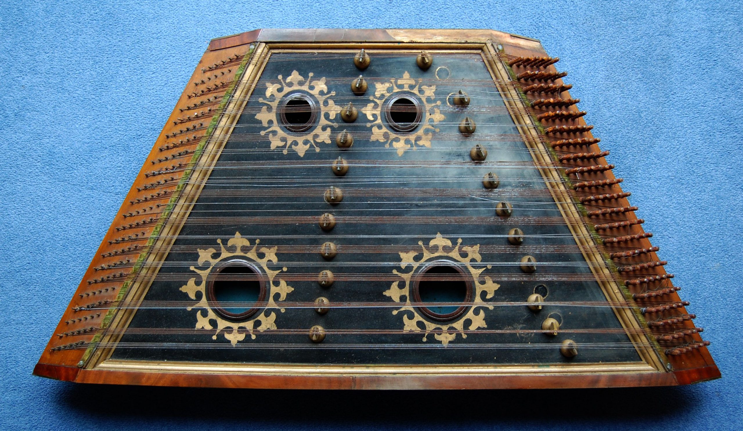 This could possibly be Henry Edwards from Norwich (1863-1955), who owned a dulcimer made by Mark Widdows: this instrument with the maker’s plaque is stylistically very similar to the Widdows dulcimer belonging to “our” Henry Edwards. The most obvious difference is that the Widdows-made one has a unique decorative pattern around the sound-holes, whereas the Edwards-made one has the standard stencilled patterns, but in every other respect it looks almost identical.