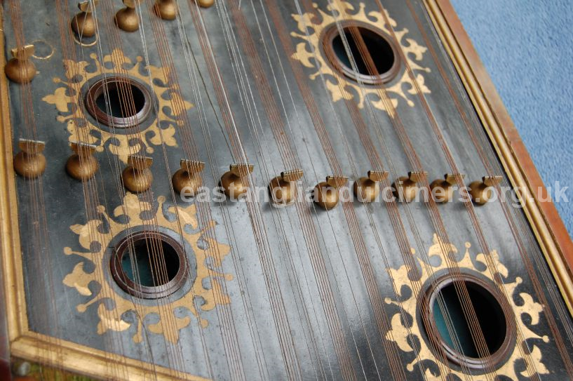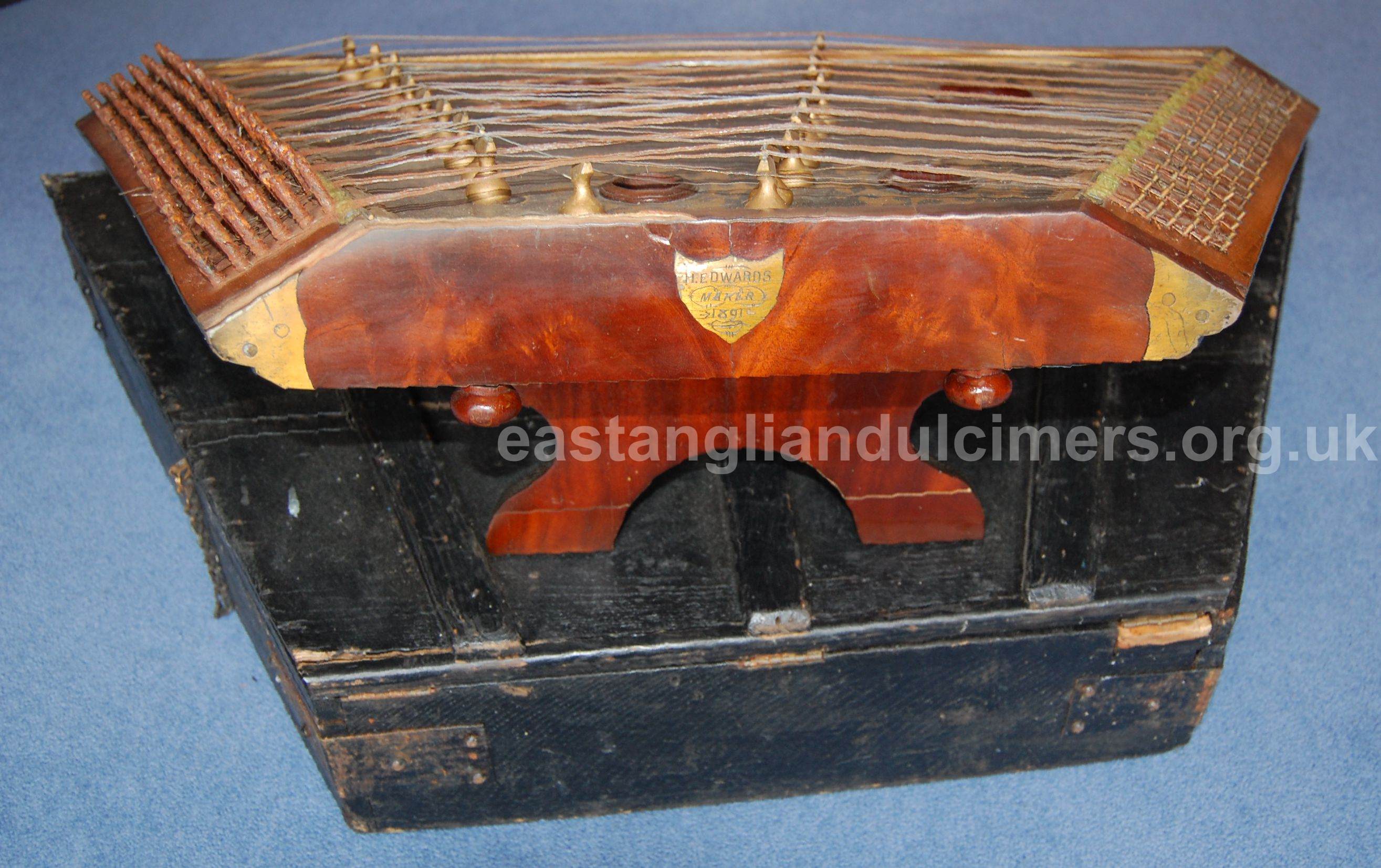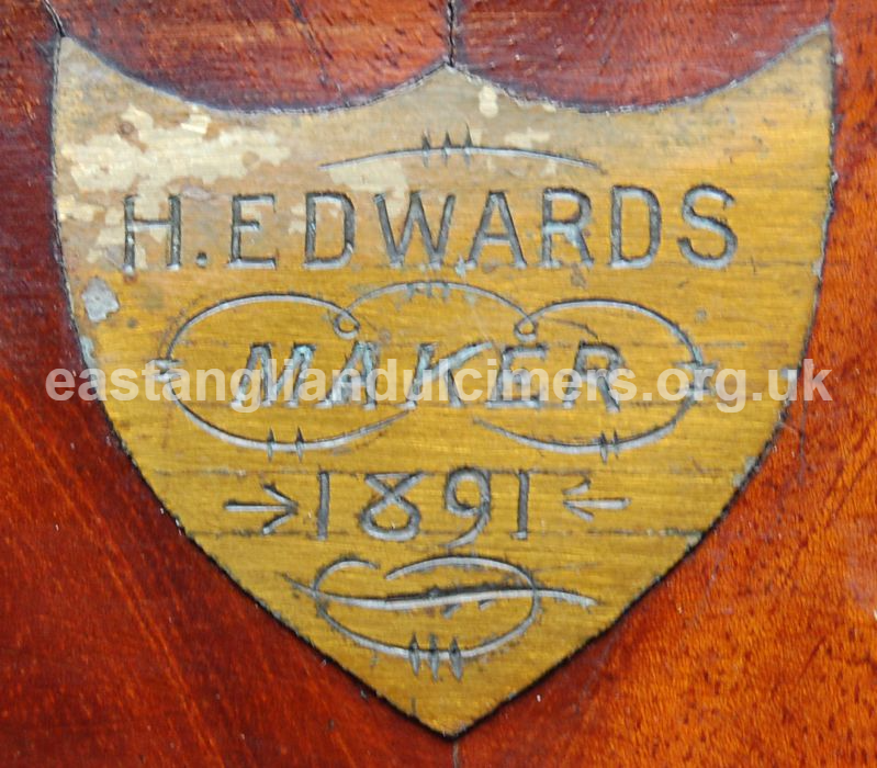 In 2018 we were contacted via the Nonsuch Dulcimer Club by someone who had bought an East Anglian style dulcimer in a saleroom and wanted to sell it on. On this dulcimer is a brass plaque with the inscription ‘H. Edwards maker 1891’.