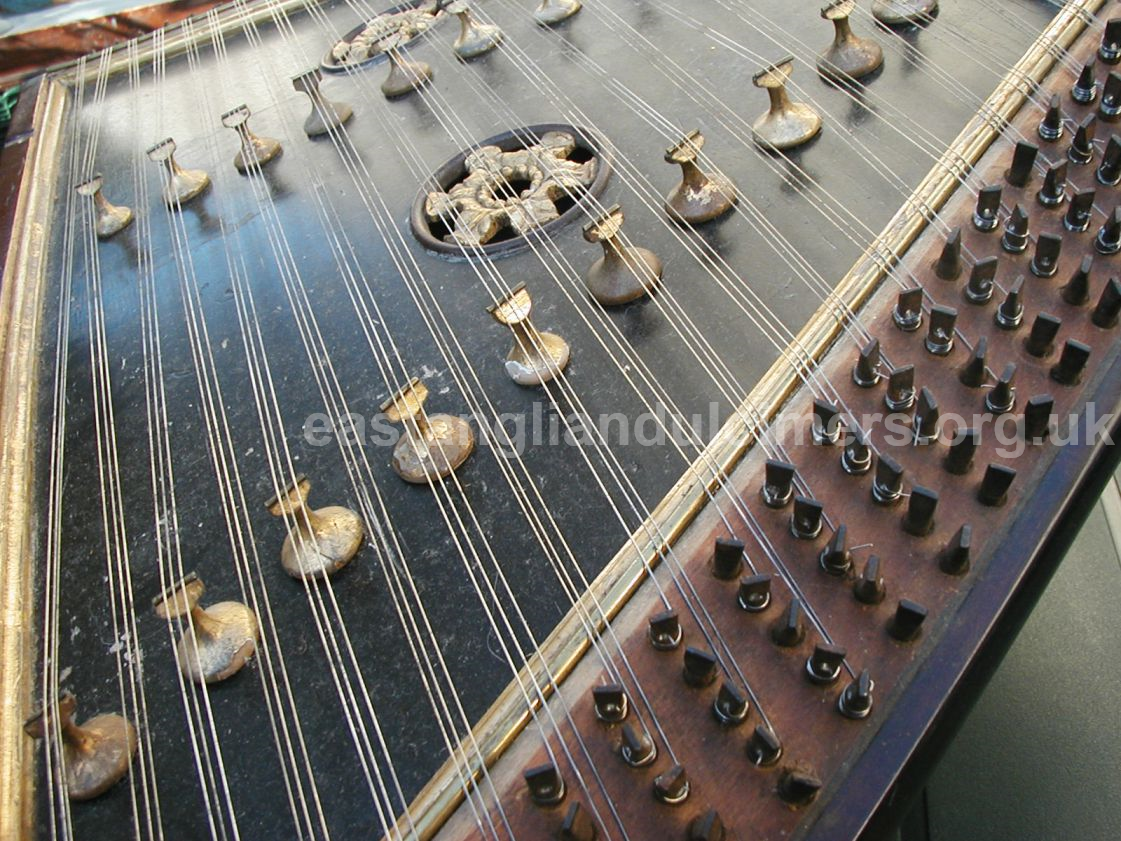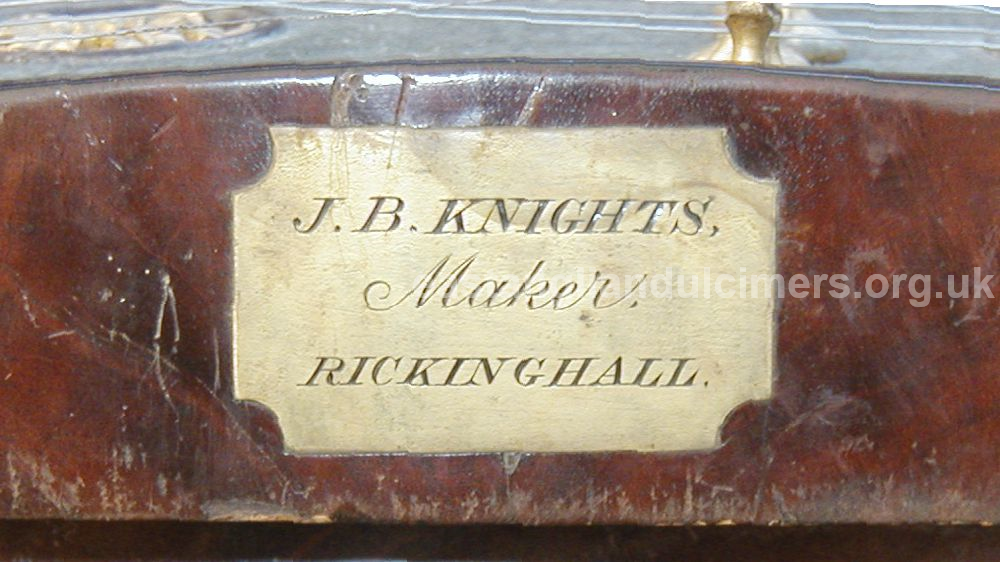 This is a finely made instrument, so clearly James Boulton Knights had very good woodworking skills or he worked with someone else. He would probably have come across dulcimers either in the Wymondham / Wramplingham area as a lad, or in the Coslany /Heigham areas of Norwich as a young man. In the latter area there was at least one master cabinet maker producing high quality dulcimers at the time – Mark Widdows who ran the Lamb Inn and then the Arabian Horse public houses and was listed in censuses as ‘musical instrument maker and publican’. James would have kept up with his Norwich contacts to some extent as his in-laws continued to live in the area.