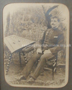 A dulcimer, case and photograph were donated to the Norfolk Museums Service in 1974 by a Mrs Mann of Bayford Hotel, Asplands Road, Norwich. The photographs were part of a set of four of her grandparents and uncles James and George Ellis. Since that time, the items themselves seem to have been dispersed around the county museums and there was insufficient evidence to identify the musician in the picture.