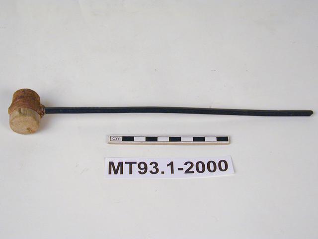 This instrument can be seen in the Horniman online archive, where it is identified as being made by John Robinson and associated with Huntingdonshire. The instrument is said to have a label inside with the name John Robinson and the date 1846. It is highly decorated and has individual chessman bridges, 11 treble and just 2 basses. Given that it was said to be in poor condition when owned by the V&A, I suspect it has been restored and the bridges may not be in the original positions. There are two beaters made from corks which are thought to be contemporary with the instrument.