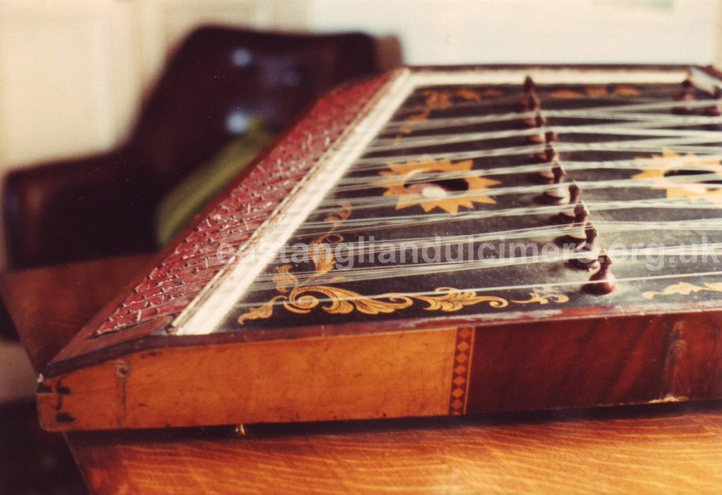John had owned a dulcimer earlier on in life, which he sold to an American serviceman just after the Second World War. Billy Cooper later found him the one in this photograph, from Kelling, which was beautifully decorated – reputedly Billy Cooper himself did this – or possibly only the stars, which are actually the least notable part of the decoration.