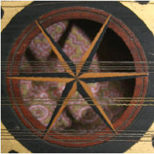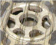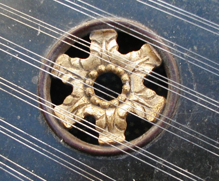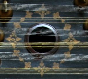 You may notice a couple of pairs of images that look identical here – from instruments owned by Harry Punt and Frank Rice. Lest you think it’s a mistake, here are the two instruments side-by-side. The sound hole inserts and decoration are the same, but the Punt instrument has additional gilt decoration and the proportions of the instruments are slightly different.