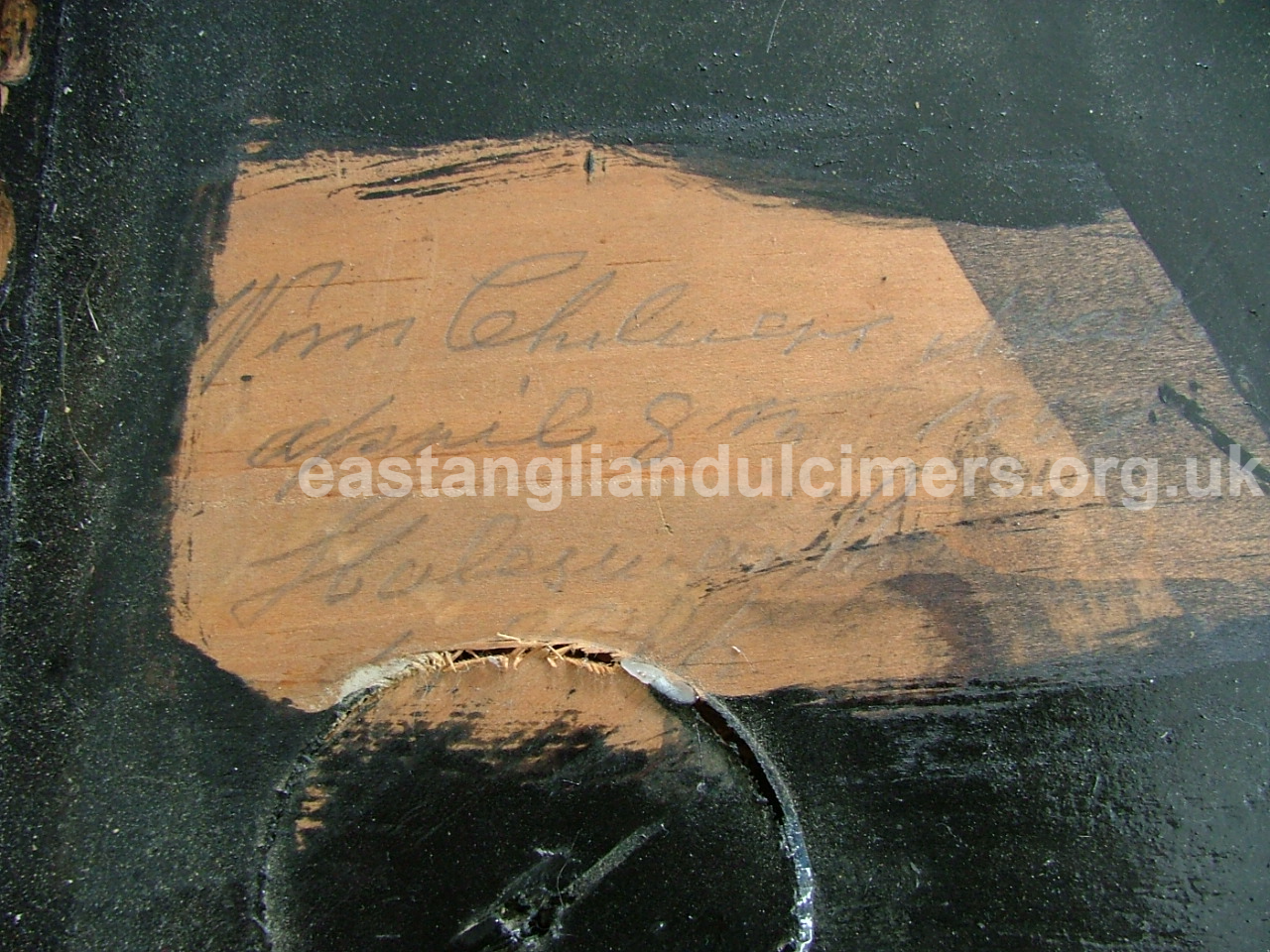 The first one we came across was played by several generations of the same family – James Philpot (1841-1911, who had lived in the same street in Halesworth as William Chilvers), Charlie Philpot (1877-1965), Reg Reader (1937-2014). It now belongs to the fourth generation of the family to play the dulcimer, Reg’s grandson Tom Knights.
