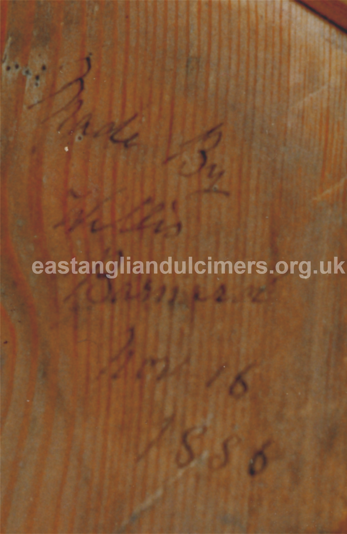 We know of Willis Barnard as a maker, due to a dulcimer, in private hands, which had been acquired around 2008 from Cambridgeshire instrument-maker and restorer Alec Anness. Alec had it from Marjorie Barnard, who was the daughter of Willis’ youngest son Leonard. During restoration, the information ‘Made by Willis Barnard, Nov 16 1886’ was found written inside the instrument.